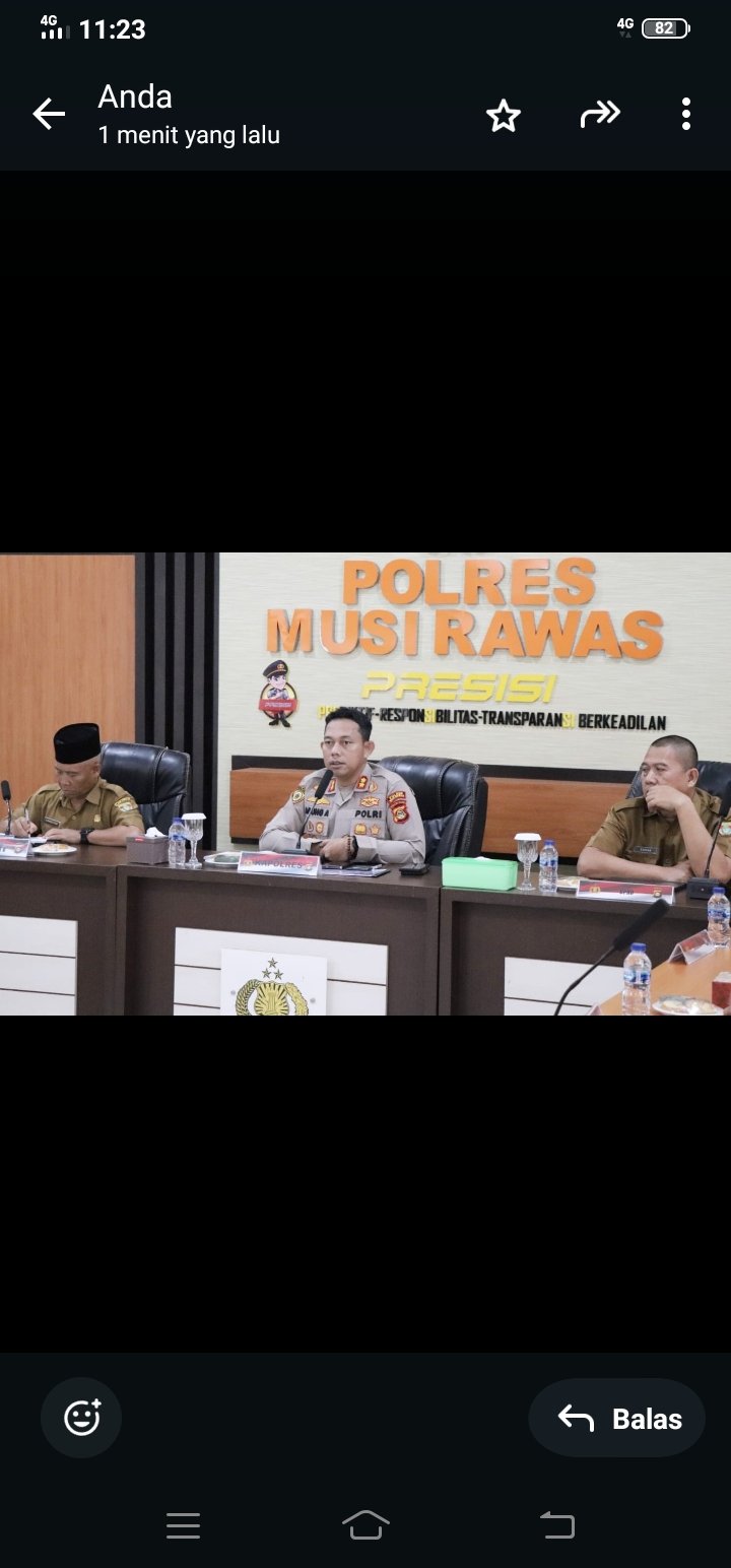 MUSI RAWAS-Polres Musi Rawas (Mura), bersama Pemda Mura, menggelar Rapat Koordinasi Lintas Sektoral Dalam Rangka Kesiapsiagaan Penanggulangan Bencana Alam di Kabupaten Mura, di Gedung Pesat Gatra Polres Mura, Rabu (1/10/2025)