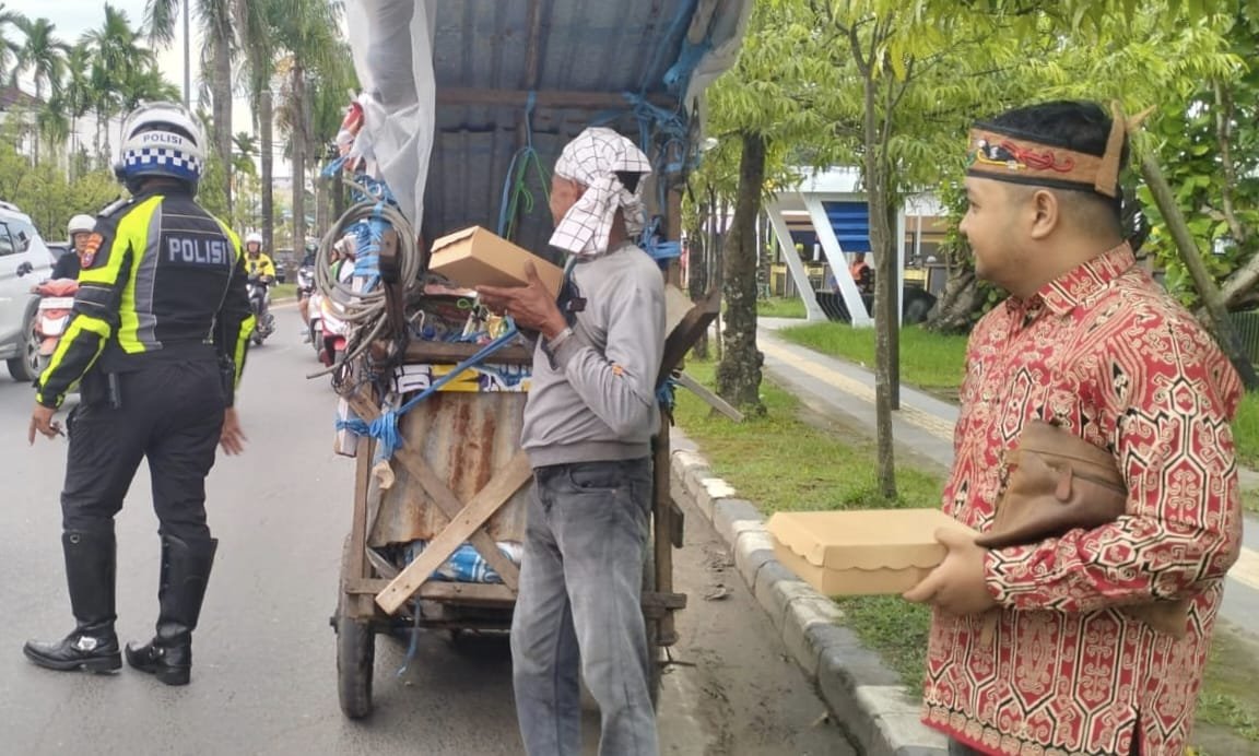 Banjarmasin, 6 Maret 2026 – Menjelang waktu berbuka puasa Ramadhan, suasana kebersamaan dan kepedulian sosial tercipta di kawasan Kayu Tangi, Banjarmasin. Apri Wilianto dari Perkumpulan Pemuda Dayak Banjarmasin memimpin aksi pembagian 150 nasi kotak takjil gratis bersama Satlantas Polresta Banjarmasin.