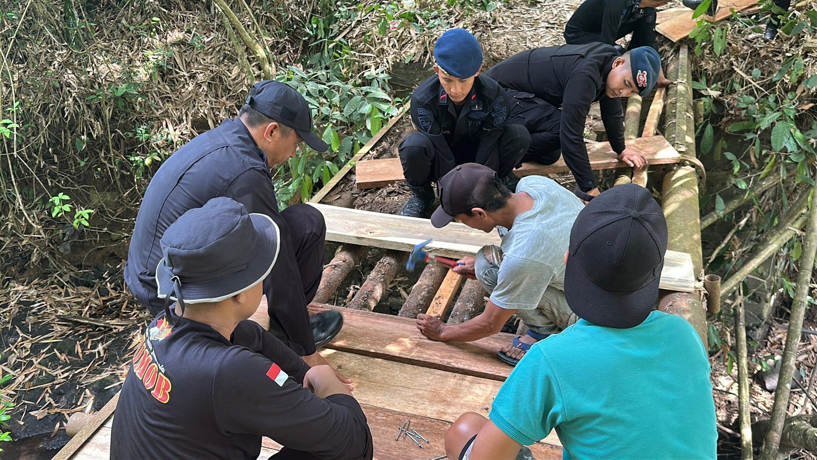 Lubuklinggau – Personel Satbrimob Polda Sumatera Selatan Batalyon B Pelopor kembali menunjukkan komitmennya terhadap pelayanan masyarakat dengan melaksanakan renovasi jembatan di salah satu wilayah terpencil. Upaya ini dilakukan sebagai respon atas kondisi jembatan yang mengalami kerusakan cukup berat dan membahayakan pengguna jalan.(1/12/2025).