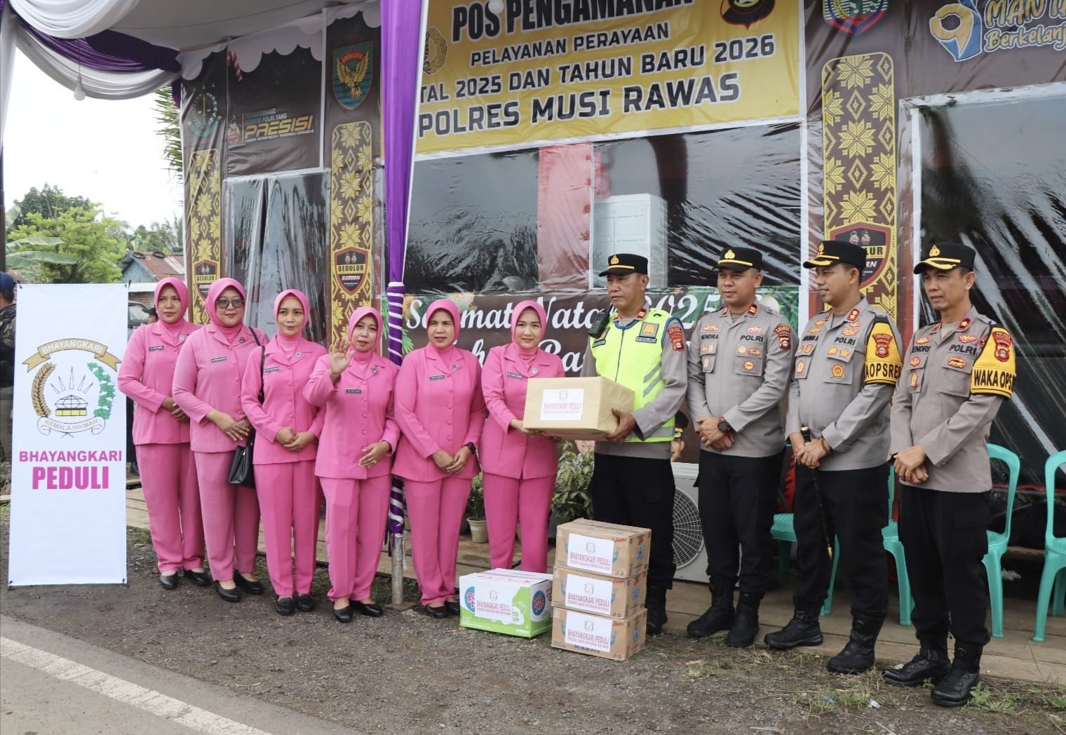 Kapolres Musi Rawas, AKBP Agung Adhitya Prananta, SH, SIK, MH, didampingi Ketua Bhayangkari Cabang Musi Rawas, Ny Diana Agung serta Wakapolres Musi Rawas, Kompol Hendri SH, melaksanakan kegiatan pengecekan Pos Pengamanan (Pos Pam) dalam rangka Operasi Lilin Musi 2025, Kamis (25/12/2026).