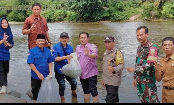 KABUPATEN MUSI RAWAS SUMATERA SELATAN,,Camat Selangit Bapak Misbahuddin Lubis bersama Kepala Dinas Perikanan Kabupaten Musi Rawas Bapak Drh. H. Nasir, Kabid Bapak Dodi, M.M, Pj. Kades Melintang Bapak Samsu Rizal Anwar, Babinsa, Babinkamtibmas, Kasi PMD, Pendamping Desa, Ketua BPD, Tokoh masyarakat serta warga Napal Melintang menebarkan Benih Ikan Patin di Sungai Lakitan. Kamis, 20 November 2025.
