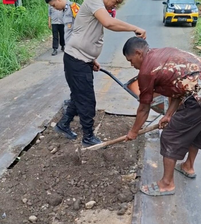 Menindaklanjuti kondisi tersebut, Kapolsek BTS Ulu, bersama personel turun langsung melakukan perbaikan sementara guna meminimalisir risiko kecelakaan serta memberikan rasa aman dan nyaman bagi pengguna jalan.