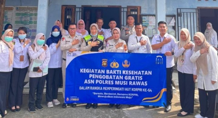 MUSI RAWAS-Aparatur Sipil Negara (ASN), Polres Musi Rawas (Mura), menggelar kegiatan Bakti Kesehatan Pengobatan Gratis di Kantor Desa Pedang, Kecamatan Muara Beliti, Kabupaten Mura, Rabu (19/11/2025).