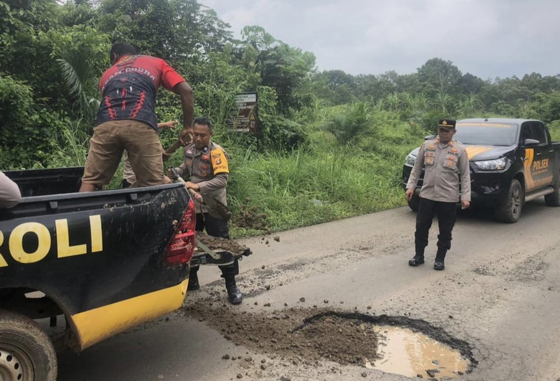 Menindaklanjuti laporan tersebut, Kapolsek BTS Ulu bersama enam personel melakukan penutupan dan penimbunan terhadap lima titik lubang jalan yang dinilai rawan kecelakaan.