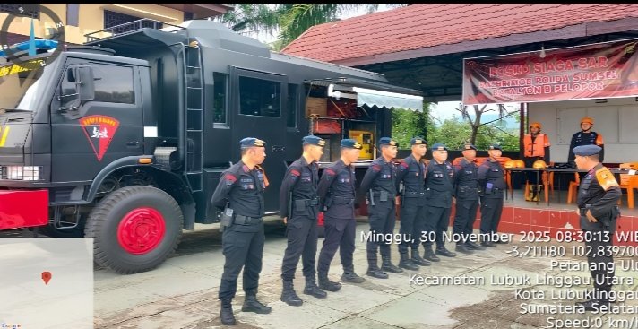 LUBUKLINGGAU — Personel Satbrimob Polda Sumsel Batalyon B Pelopor melaksanakan Giat Siaga SAR di Mako Batalyon B Pelopor pada Minggu, 30 November 2025. Kegiatan ini menjadi wujud kesiapsiagaan Brimob dalam menghadapi potensi bencana alam, terutama pada musim penghujan.