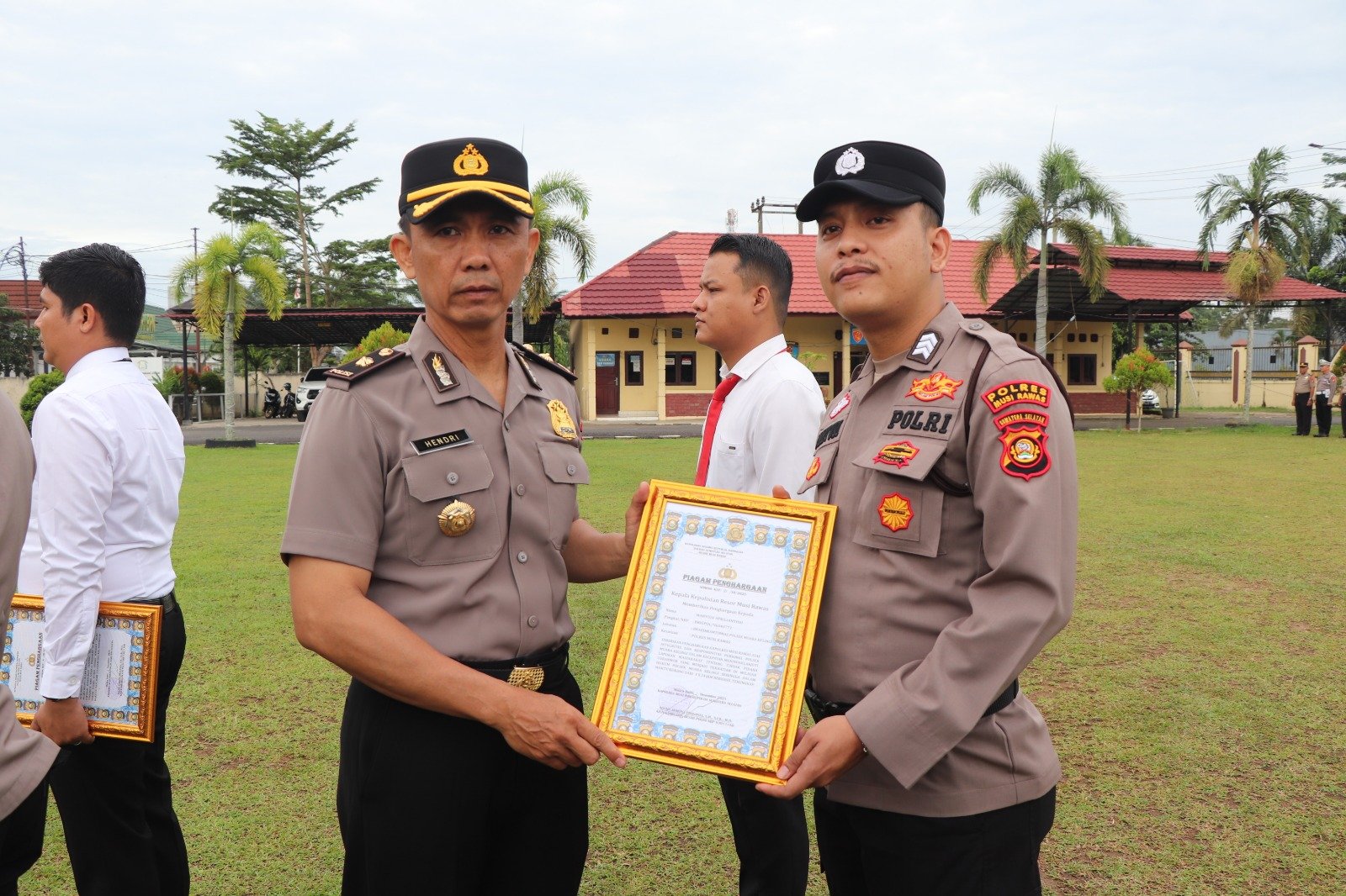 Penghargaan tersebut diserahkan saat pelaksanaan apel rutin yang dipimpin oleh, Kapolres Musi Rawas, AKBP Agung Adhitya Prananta, SH, SIK, MH, diwakili, Wakapolres, Kompol Hendri SH, serta dihadiri, para PJU, para Kapolsek, personel Polres Musi Rawas dan perwakilan Polsek jajaran, dihalaman apel Mapolres Musi Rawas, Senin (8/12/2025).