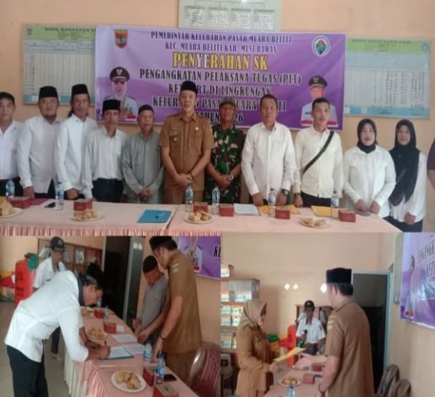 KABUPATEN MUSI RAWAS SUMATERA SELATAN,,SEBANYAK 12 Pelaksana Tugas (PLT) Ketua RT Dilingkungan Kelurahan Pasar Muara Beliti Kabupaten Musi Rawas Provinsi Sumatera Selatan telah resmi menjabat dan menerima Surat Keputusan (SK) Pengangkatan yang berlangsung di Kantor Lurah, Selasa (20/01/2026)