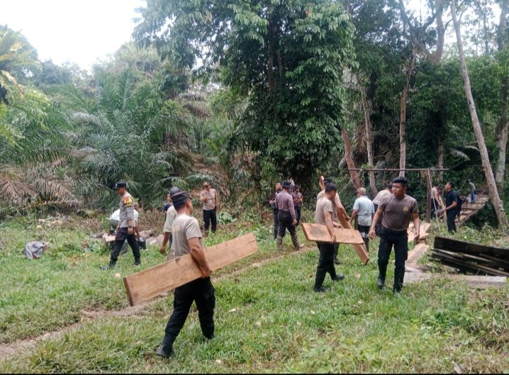 “Kayu-kayunya sudah lapuk dimakan usia dan sangat rawan dilalui. Atas perintah Bapak Kapolres, kami bersama masyarakat bergerak cepat melakukan perbaikan demi keselamatan bersama,” ujarnya.