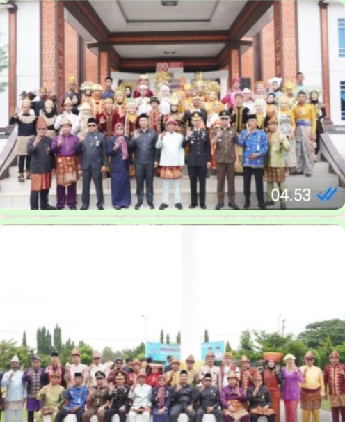 Suasana tampak semarak dan penuh makna, terlebih para Kepala OPD, Staf Ahli Bupati, serta Asisten Bupati tampil mengenakan busana adat dari berbagai daerah di Indonesia, mencerminkan keberagaman budaya nusantara.