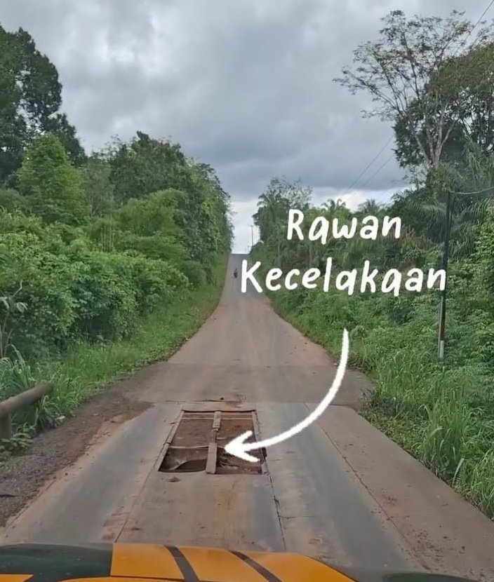 Petugas patroli mendapati adanya genangan air di sepanjang jalan cor yang menutupi permukaan jalan serta kondisi jembatan besi yang mengalami kerusakan, yakni terdapat lubang di bagian tengah jembatan yang berisiko menimbulkan kecelakaan lalu lintas.