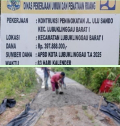 Proyek peningkatan Jalan Ulu Sando di Kelurahan Kayuara RT 06, Kecamatan Lubuklinggau Barat I, Senin 03/11/2025: