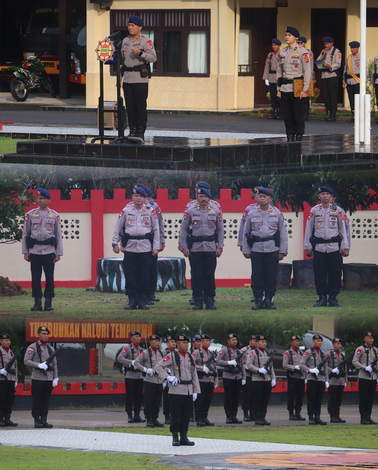 Dalam upacara tersebut, Danyon B Pelopor AKBP Andiyano, S.K.M., M.H. bertindak selaku Inspektur Upacara. Sementara itu, Komandan Upacara dijabat oleh Ipda Dede Supriadi dan Perwira Upacara oleh Ipda Zulhajri.