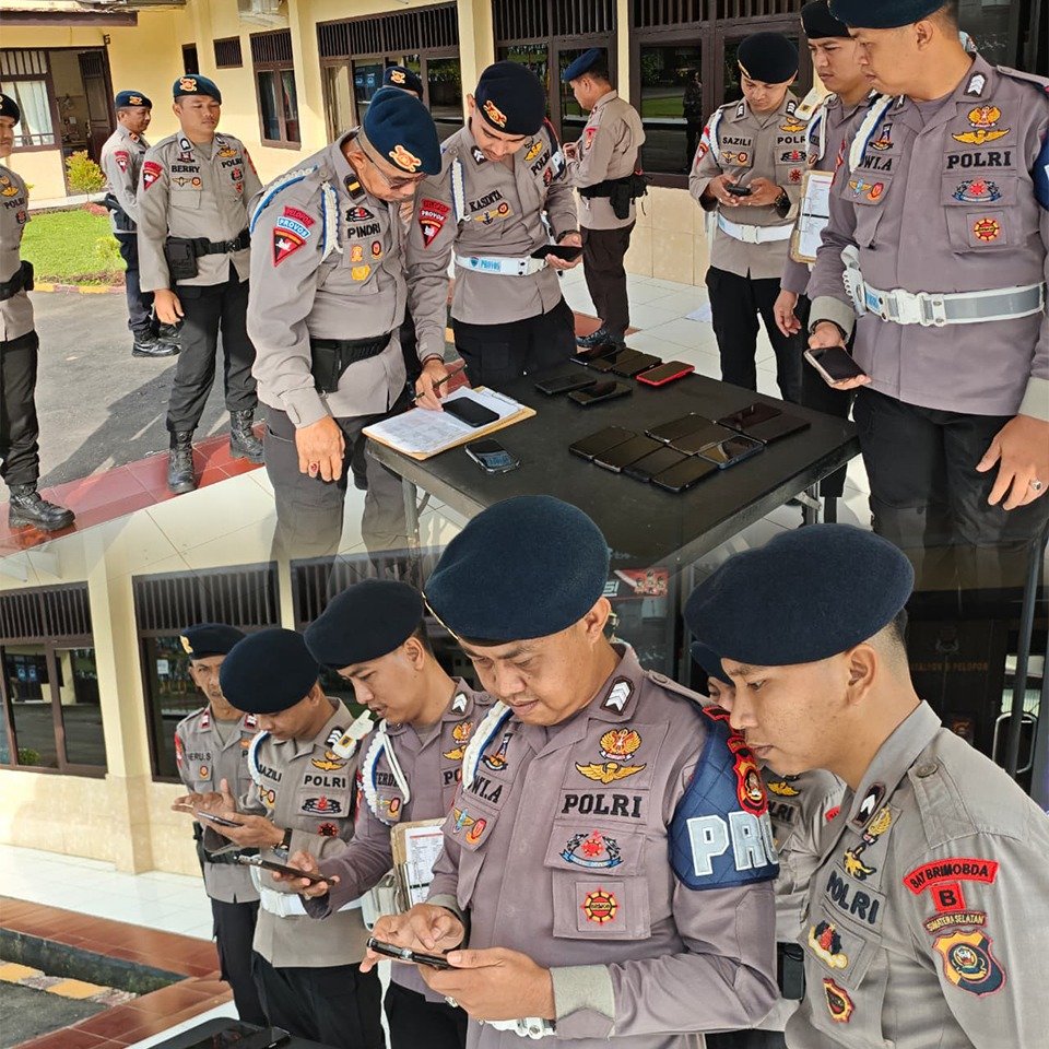Pemeriksaan dilakukan secara menyeluruh terhadap perangkat telepon seluler personel sebagai bagian dari pengawasan internal satuan guna memastikan kedisiplinan serta mencegah keterlibatan anggota dalam aktivitas yang melanggar aturan, khususnya praktik judi online.
