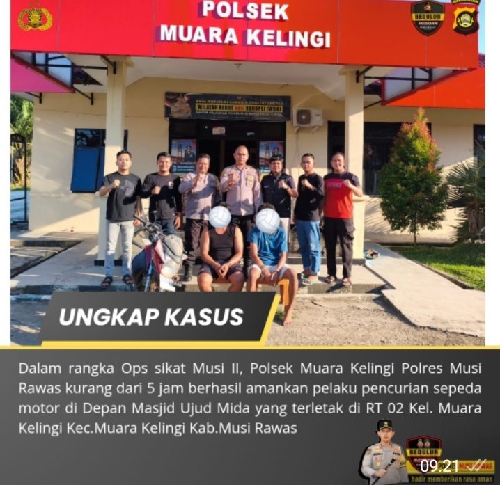 MUSI RAWAS-Unit Reskrim Polsek Muara Kelingi Polres Musi Rawas (Mura), meringkus terduga dua dari tiga pelaku curanmor di Jalan Lintas Mura-Muba, tepatnya di Desa Bingin Jungut, Kecamatan Muara Kelingi, Kabupaten Mura, sekitar pukul 06.00 WIB, Jumat (31/10/2025).