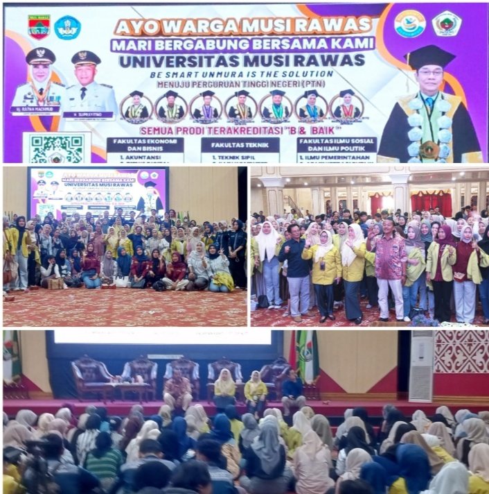 KABUPATEN MUSI RAWAS SUMATERA,,Hal ini ditegaskan melalui kegiatan Sosialisasi Penegerian dan Penerimaan Mahasiswa Baru (PMB) Tahun Akademik 2026–2027 yang digelar di Auditorium Pemerintah Kabupaten Musi Rawas, Selasa (06/01/2025). Kegiatan ini menjadi sinyal kuat bahwa proses penegerian Unmura bukan sekadar wacana, melainkan agenda strategis yang tengah berjalan.